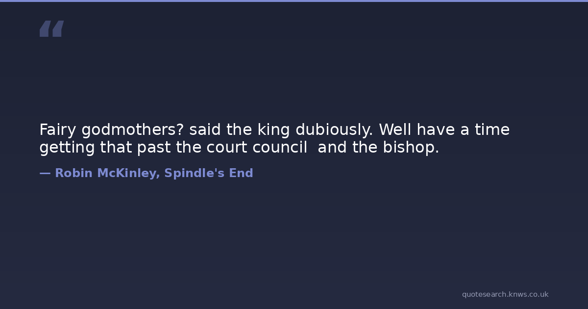 Fairy godmothers? said the king dubiously. Well have a time getting that past the court council and the bishop.