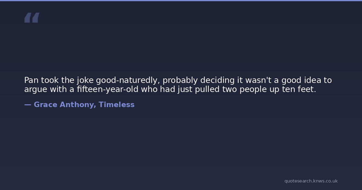 Pan took the joke good-naturedly, probably deciding it wasn't a good idea to argue with a fifteen-year-old who had just pulled two people up ten feet.