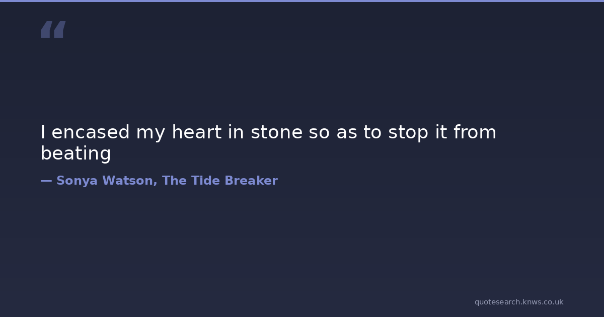 I encased my heart in stone so as to stop it from beating heartache sadness-feeling-ache Download Image Share on X Share on Facebook Copy Link