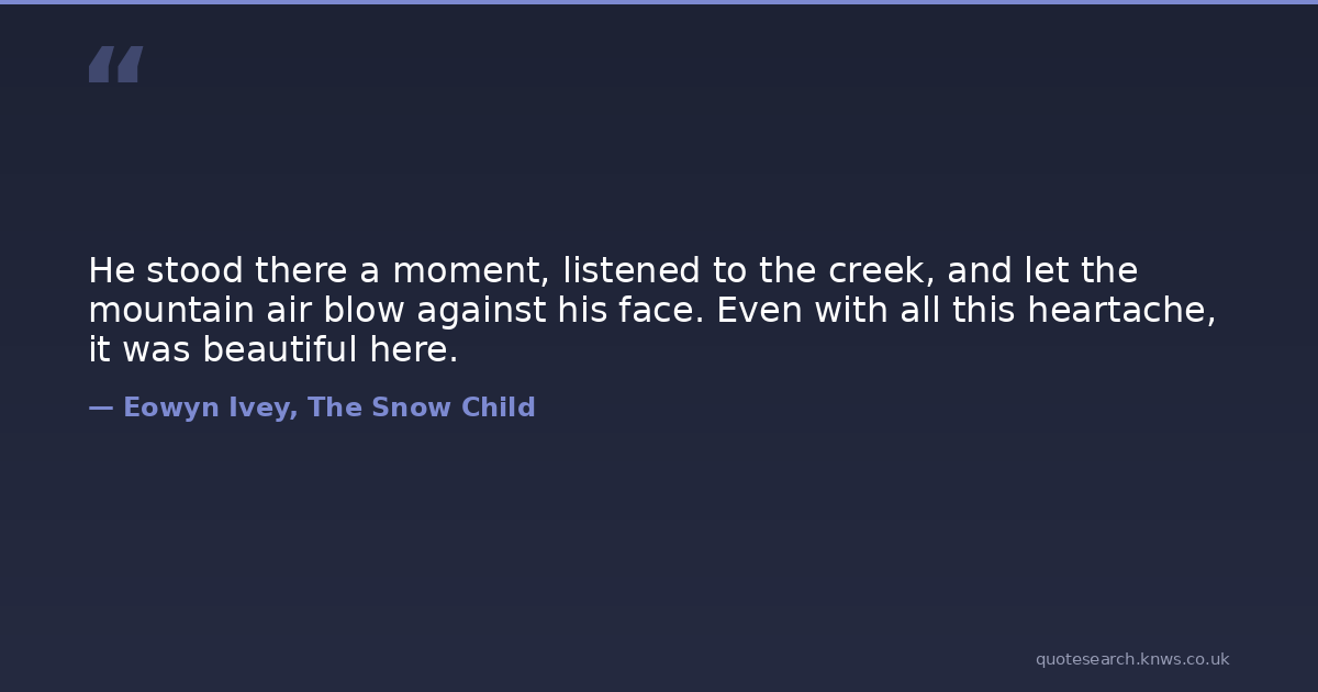 He stood there a moment, listened to the creek, and let the mountain air blow against his face. Even with all this heartache, it was beautiful here.