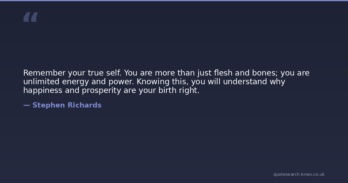 Remember your true self. You are more than just flesh and bones; you are unlimited energy and power. Knowing this, you will understand why happiness and prosperity are your birth right.