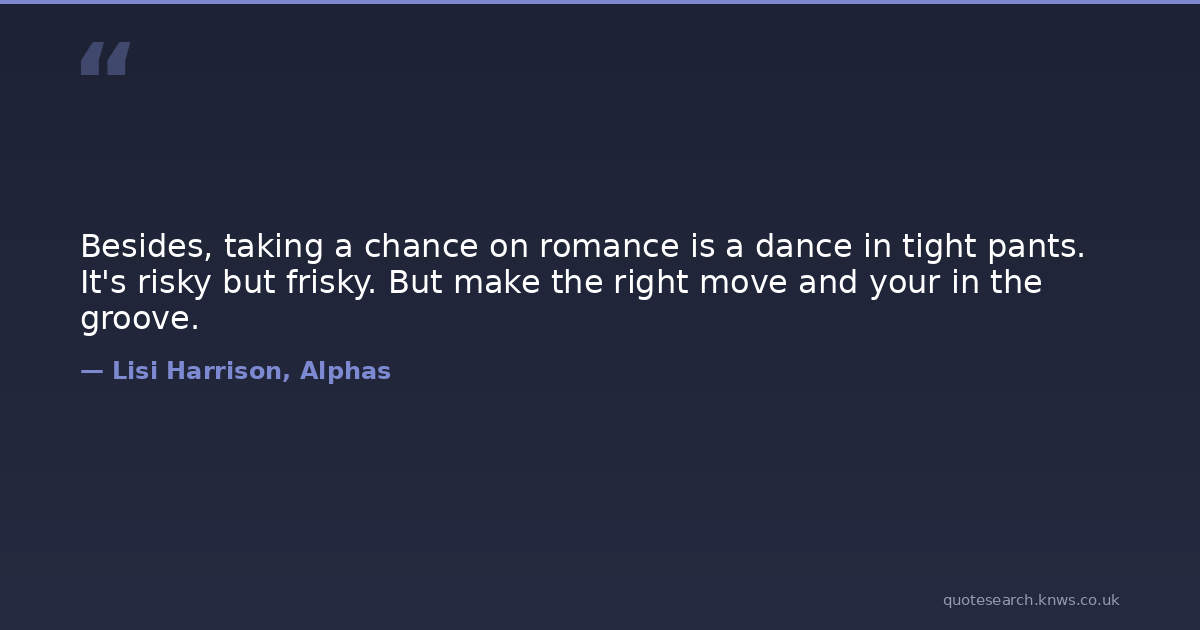 Besides, taking a chance on romance is a dance in tight pants. It's risky but frisky. But make the right move and your in the groove.