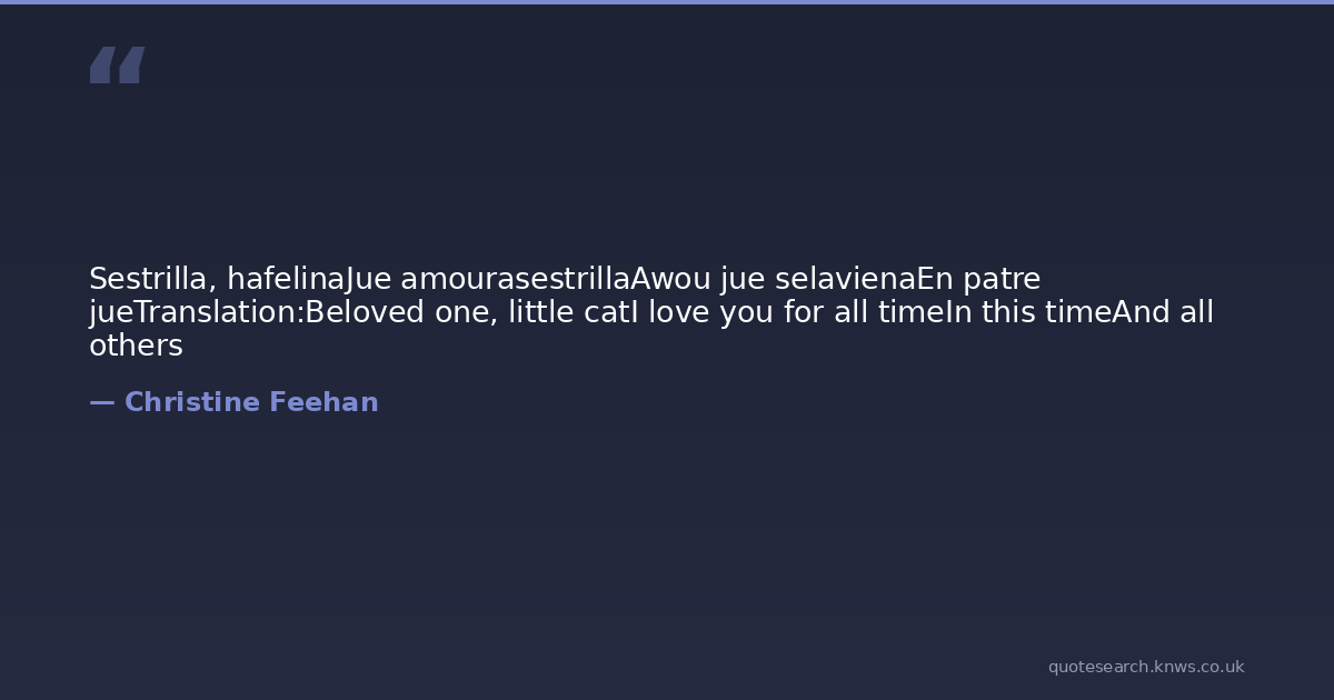 Sestrilla, hafelinaJue amourasestrillaAwou jue selavienaEn patre jueTranslation:Beloved one, little catI love you for all timeIn this timeAnd all others