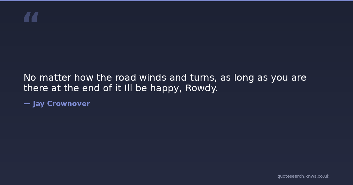 No matter how the road winds and turns, as long as you are there at the end of it Ill be happy, Rowdy.