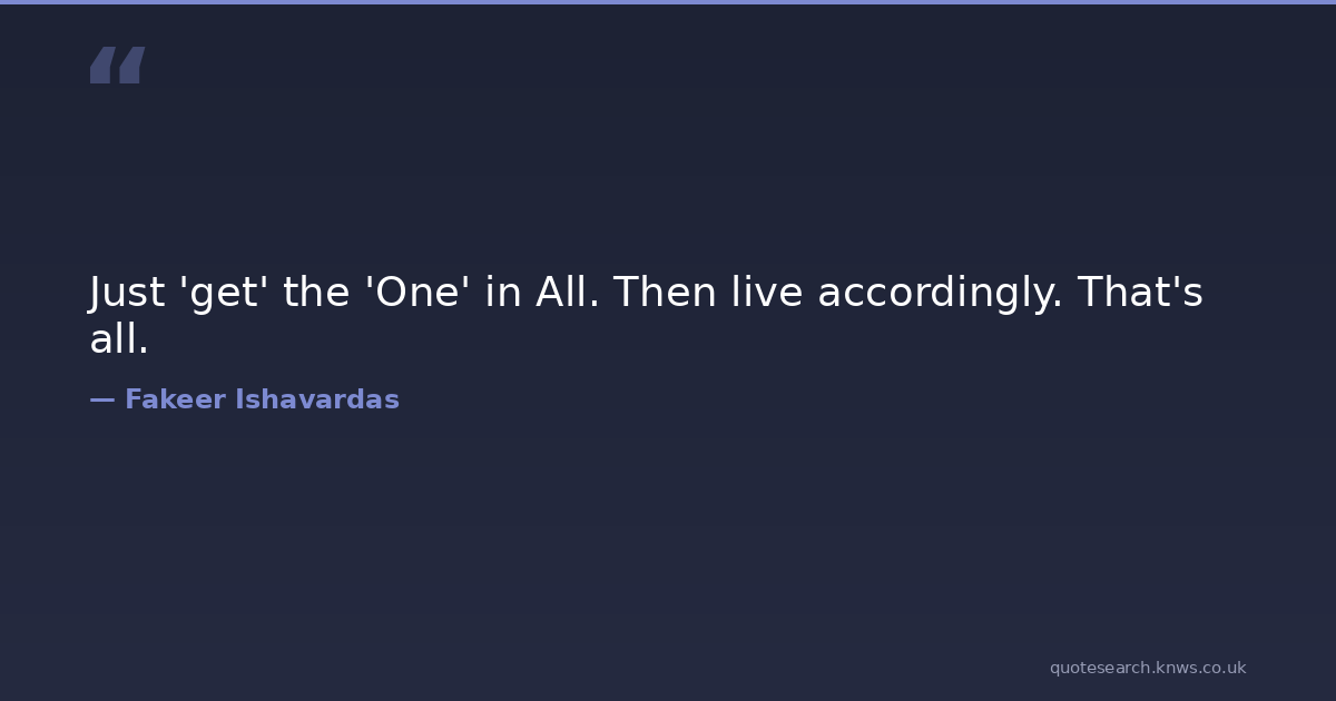 Just 'get' the 'One' in All. Then live accordingly. That's all.