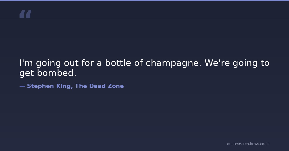 I'm going out for a bottle of champagne. We're going to get bombed. drinking humor Download Image Share on X Share on Facebook Copy Link