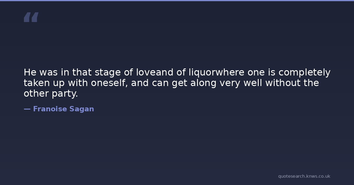 He was in that stage of loveand of liquorwhere one is completely taken up with oneself, and can get along very well without the other party.