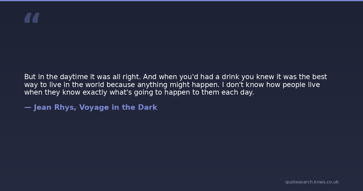 But in the daytime it was all right. And when you'd had a drink you knew it was the best way to live in the world because anything might happen. I don't know how people live when they know exactly what's going to happen to them each day.