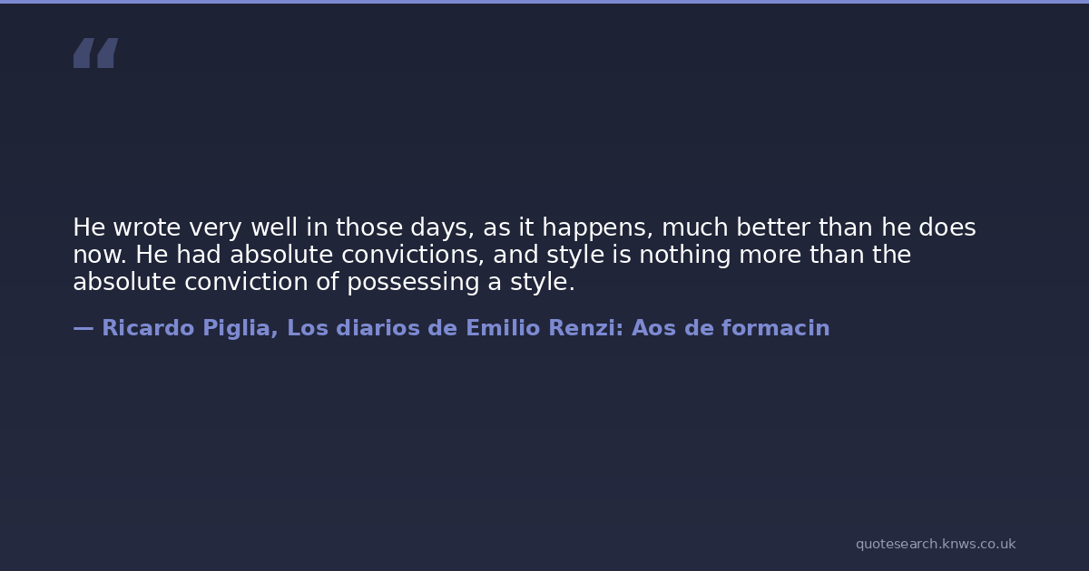 He wrote very well in those days, as it happens, much better than he does now. He had absolute convictions, and style is nothing more than the absolute conviction of possessing a style.