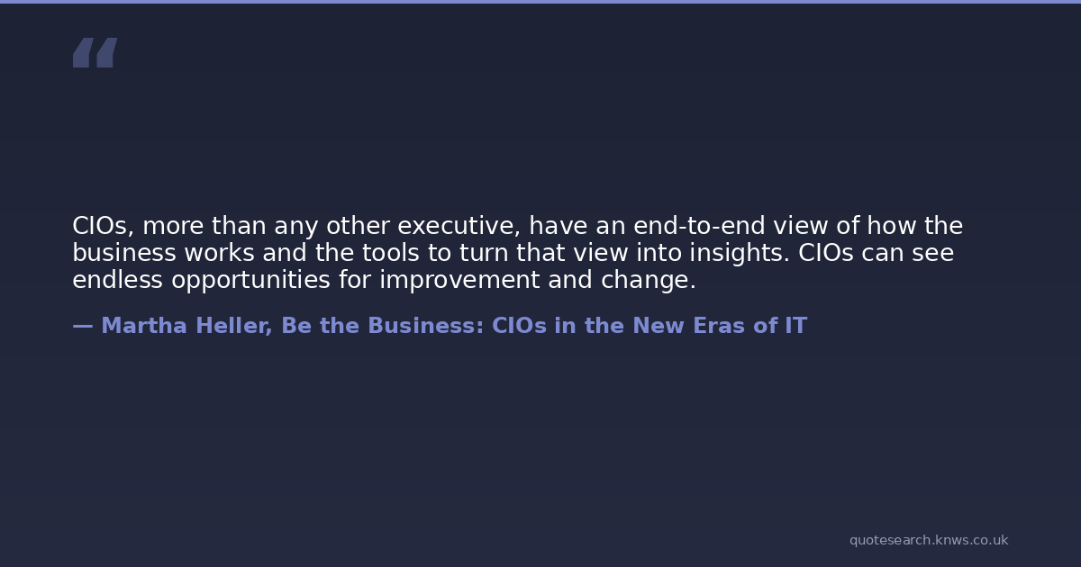 CIOs, more than any other executive, have an end-to-end view of how the business works and the tools to turn that view into insights. CIOs can see endless opportunities for improvement and change.