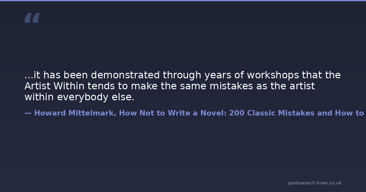 ...it has been demonstrated through years of workshops that the Artist Within tends to make the same mistakes as the artist within everybody else.
