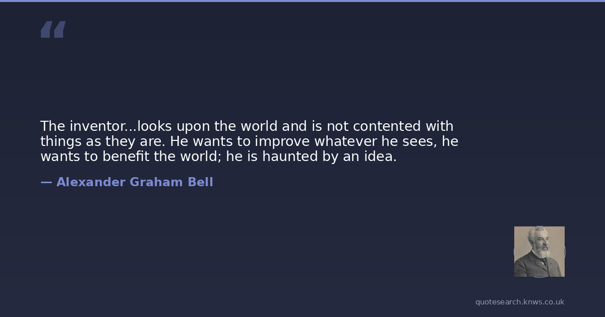 The inventor...looks upon the world and is not contented with things as they are. He wants to improve whatever he sees, he wants to benefit the world; he is haunted by an idea.