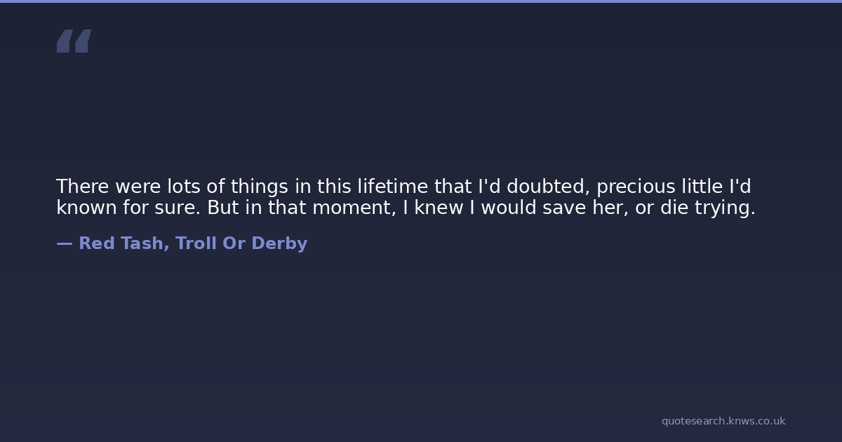 There were lots of things in this lifetime that I'd doubted, precious little I'd known for sure. But in that moment, I knew I would save her, or die trying.