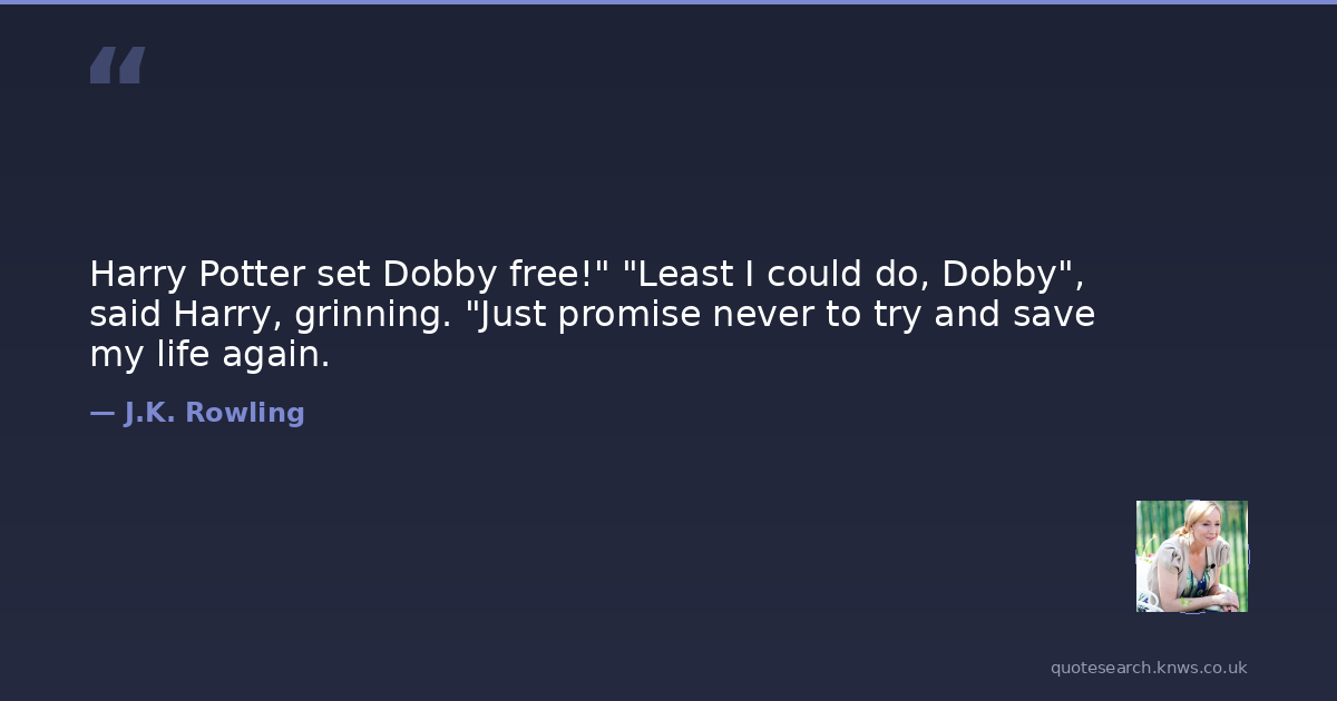 Harry Potter set Dobby free!" "Least I could do, Dobby", said Harry, grinning. "Just promise never to try and save my life again.