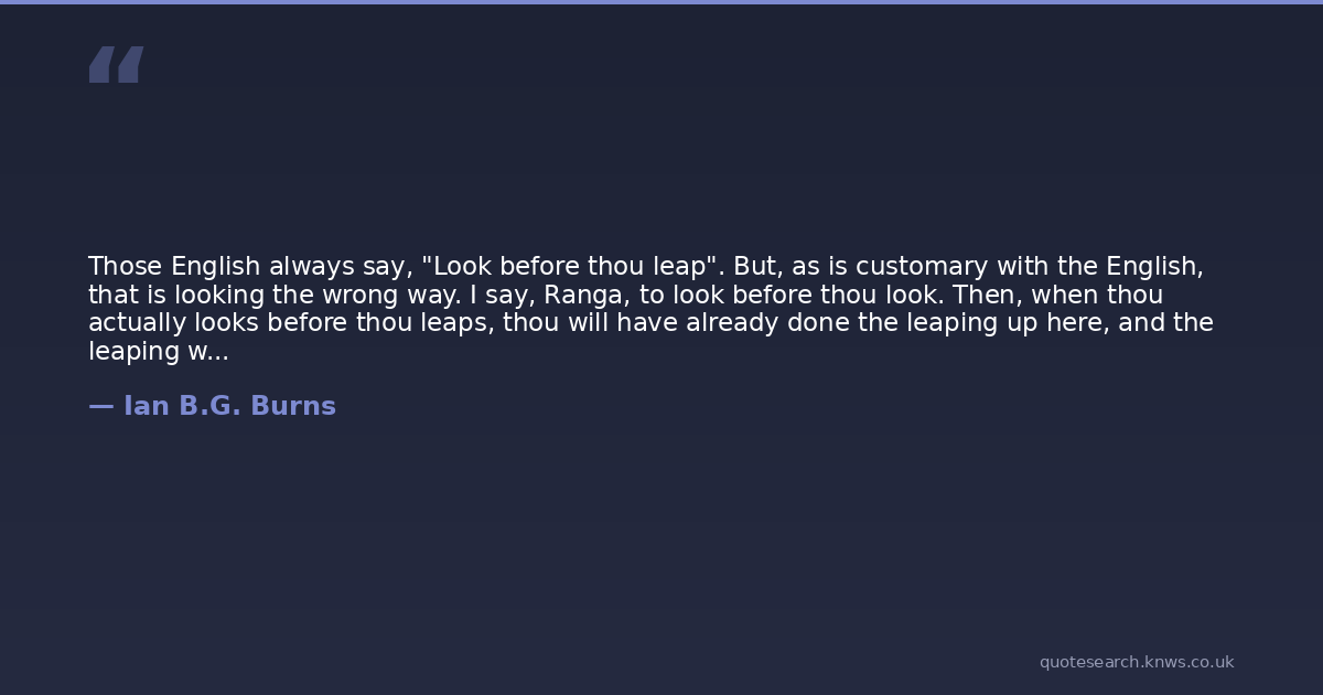 Those English always say, "Look before thou leap". But, as is customary with the English, that is looking the wrong way. I say, Ranga, to look before thou look. Then, when thou actually looks before thou leaps, thou will have already done the leaping up here, and the leaping will be much easier, if thou does it at all.