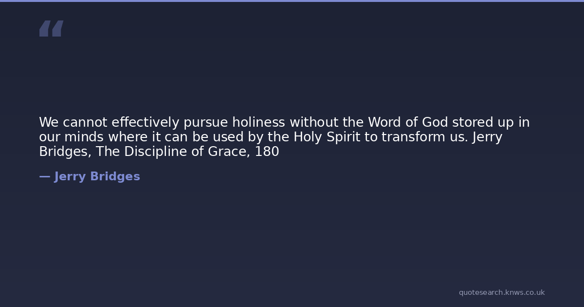 We cannot effectively pursue holiness without the Word of God stored up in our minds where it can be used by the Holy Spirit to transform us. Jerry Bridges, The Discipline of Grace, 180