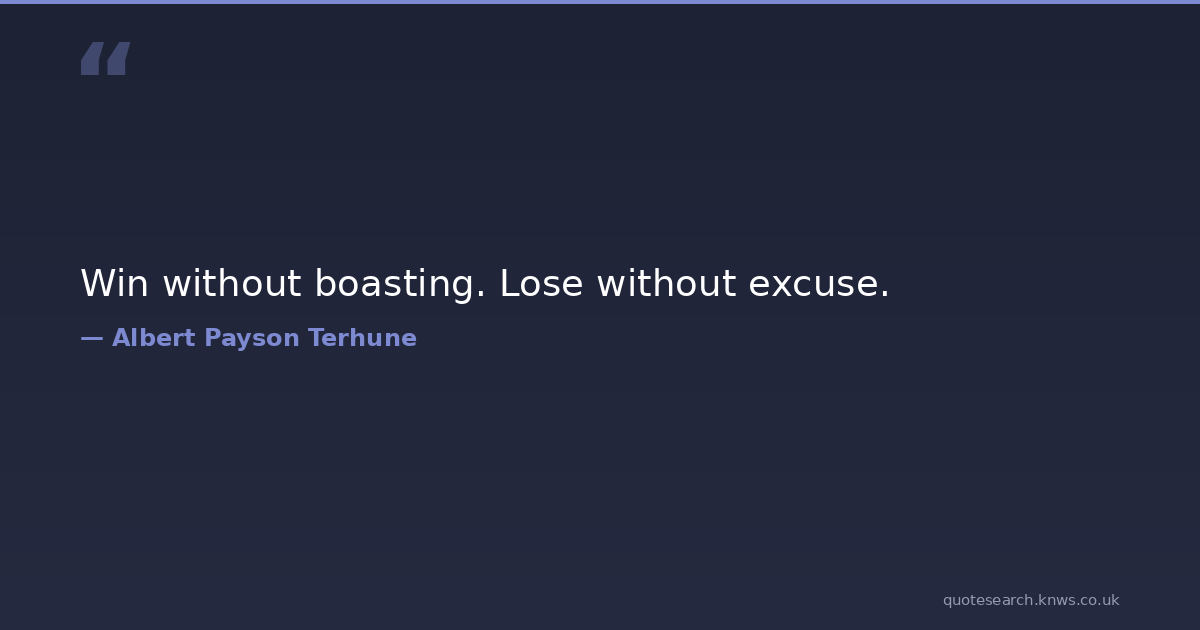 Win without boasting. Lose without excuse. losing winning Download Image Share on X Share on Facebook Copy Link