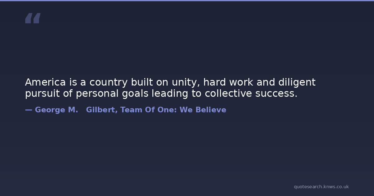 America is a country built on unity, hard work and diligent pursuit of personal goals leading to collective success.