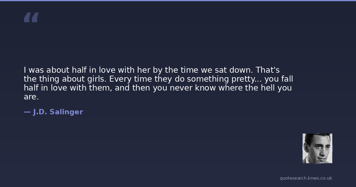 I was about half in love with her by the time we sat down. That's the thing about girls. Every time they do something pretty... you fall half in love with them, and then you never know where the hell you are.