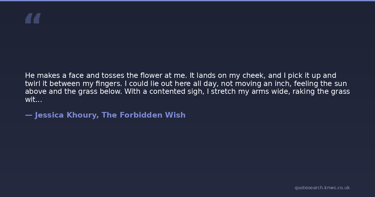 He makes a face and tosses the flower at me. It lands on my cheek, and I pick it up and twirl it between my fingers. I could lie out here all day, not moving an inch, feeling the sun above and the grass below. With a contented sigh, I stretch my arms wide, raking the grass with my fingersand find myself brushing Aladdins hand with my own. I pull it away quickly, my cheeks warming. He laughs a little.Sometimes, he says, I forget youre supposed to be four thousand years old. You act as shy as a girl of sixteen.I do not! I sit up and glare at him.He grins and shrugs, sliding his hands under his head. There are bits of grass stuck in his hair, and after a moments hesitation, I reach over and flick them away.Aladdin watches me silently, his throat bobbing as he swallows. I drop my gaze.
