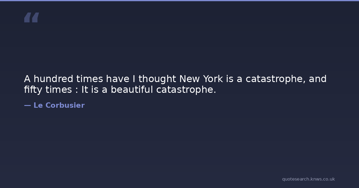 A hundred times have I thought New York is a catastrophe, and fifty times : It is a beautiful catastrophe.