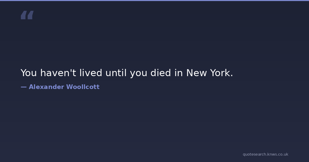 You haven't lived until you died in New York.
