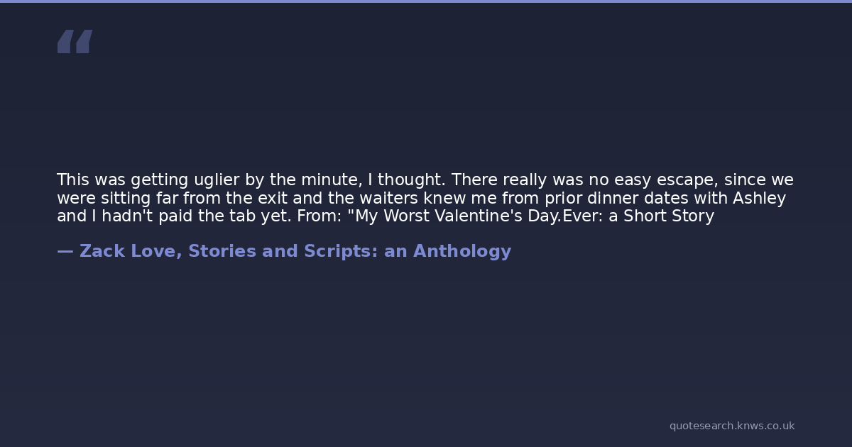 This was getting uglier by the minute, I thought. There really was no easy escape, since we were sitting far from the exit and the waiters knew me from prior dinner dates with Ashley and I hadn't paid the tab yet. From: "My Worst Valentine's Day.Ever: a Short Story