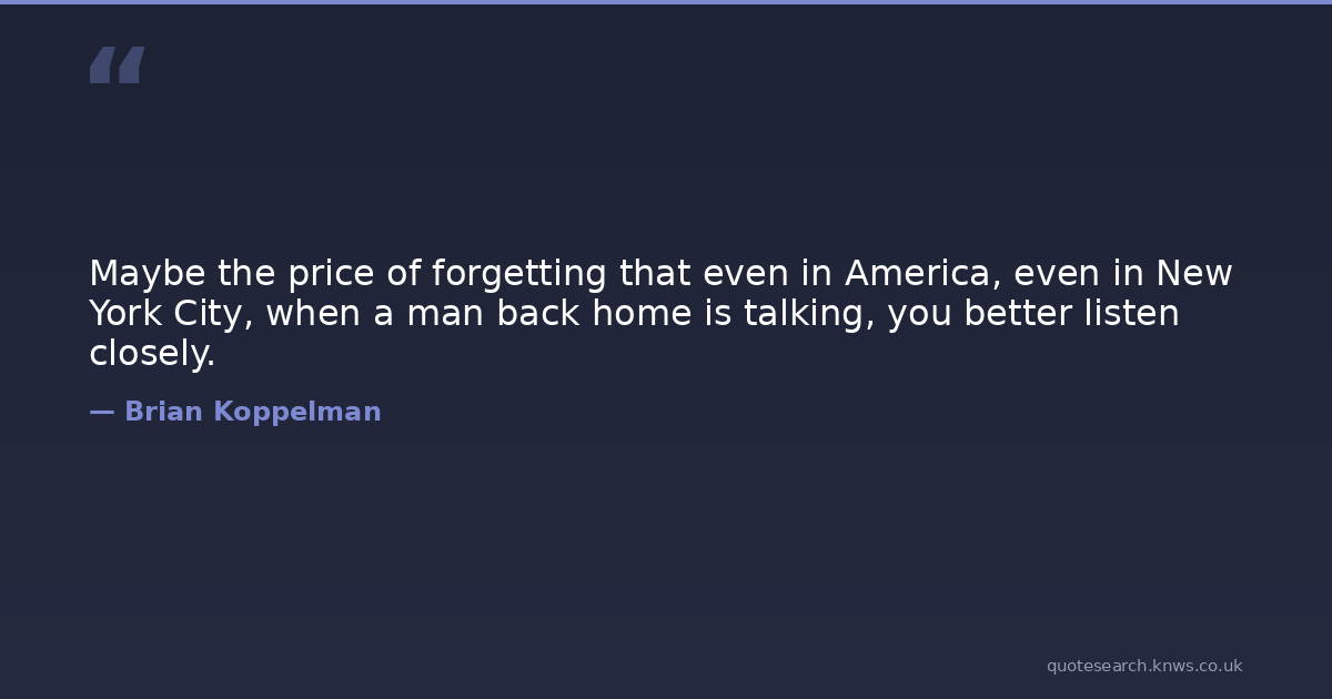 Maybe the price of forgetting that even in America, even in New York City, when a man back home is talking, you better listen closely.
