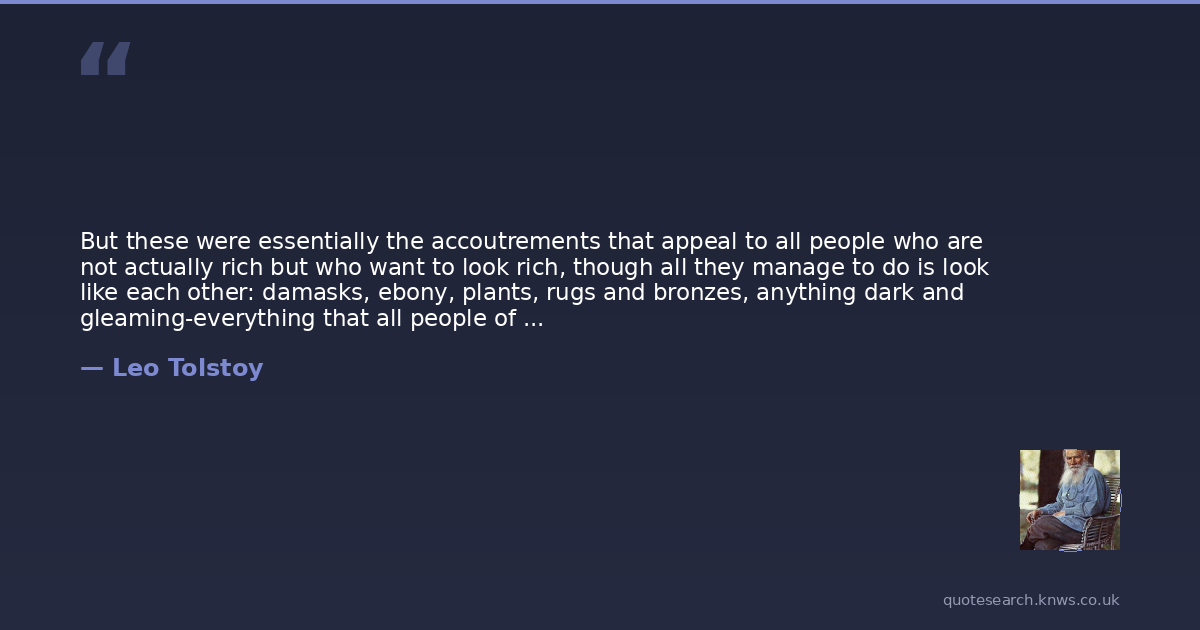 But these were essentially the accoutrements that appeal to all people who are not actually rich but who want to look rich, though all they manage to do is look like each other: damasks, ebony, plants, rugs and bronzes, anything dark and gleaming-everything that all people of a certain class affect so as to be like all other people of a certain class. And his arrangements looked so much like everyone else's that they were unremarkable, though he saw them as something truly distinctive.
