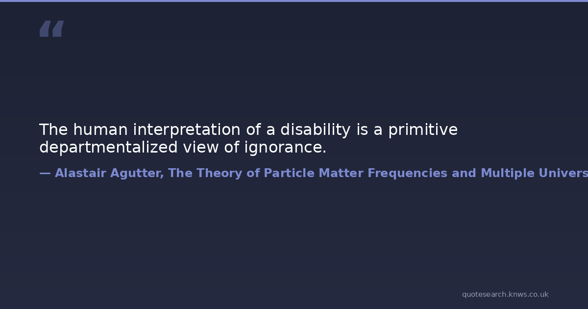 The human interpretation of a disability is a primitive departmentalized view of ignorance.