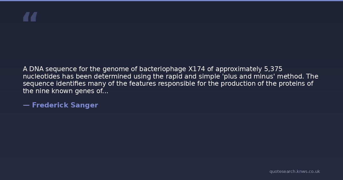 Frederick Sanger was a 20th-century British biochemist. Frederick Sanger was a British biochemist who received the Nobel Prize in Chemistry twice. Read more on Wikipedia →