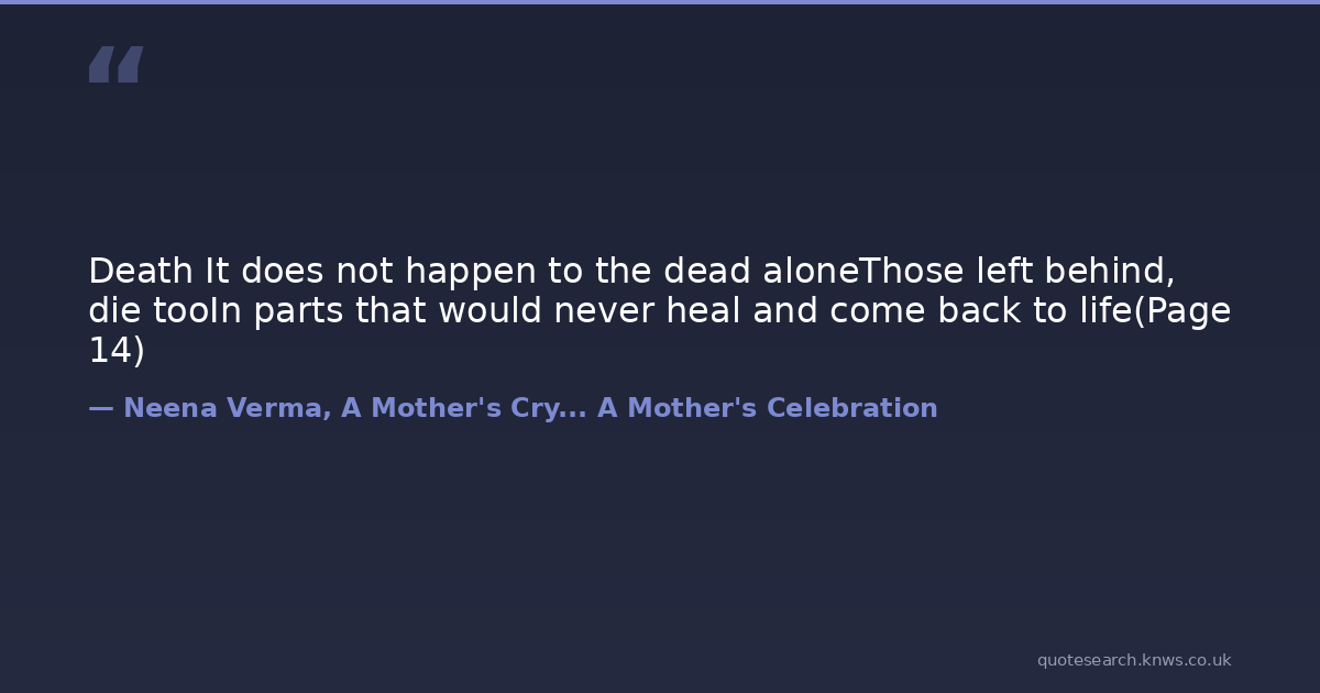 Death It does not happen to the dead aloneThose left behind, die tooIn parts that would never heal and come back to life(Page 14)
