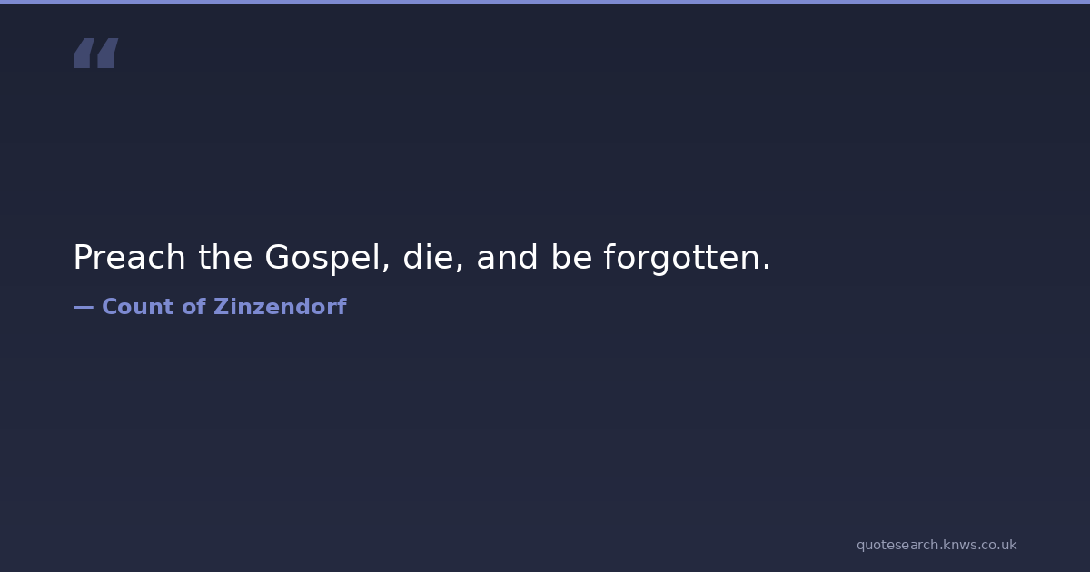 Preach the Gospel, die, and be forgotten. die forget gospel preach Download Image Share on X Share on Facebook Copy Link
