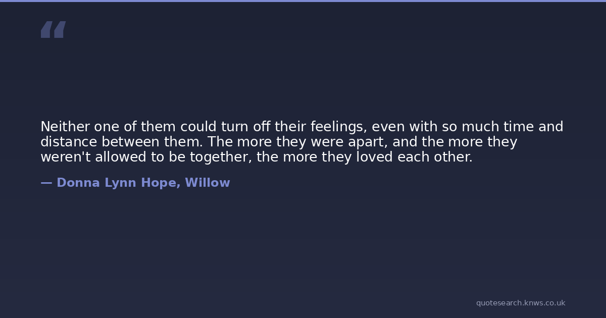 Neither one of them could turn off their feelings, even with so much time and distance between them. The more they were apart, and the more they weren't allowed to be together, the more they loved each other.