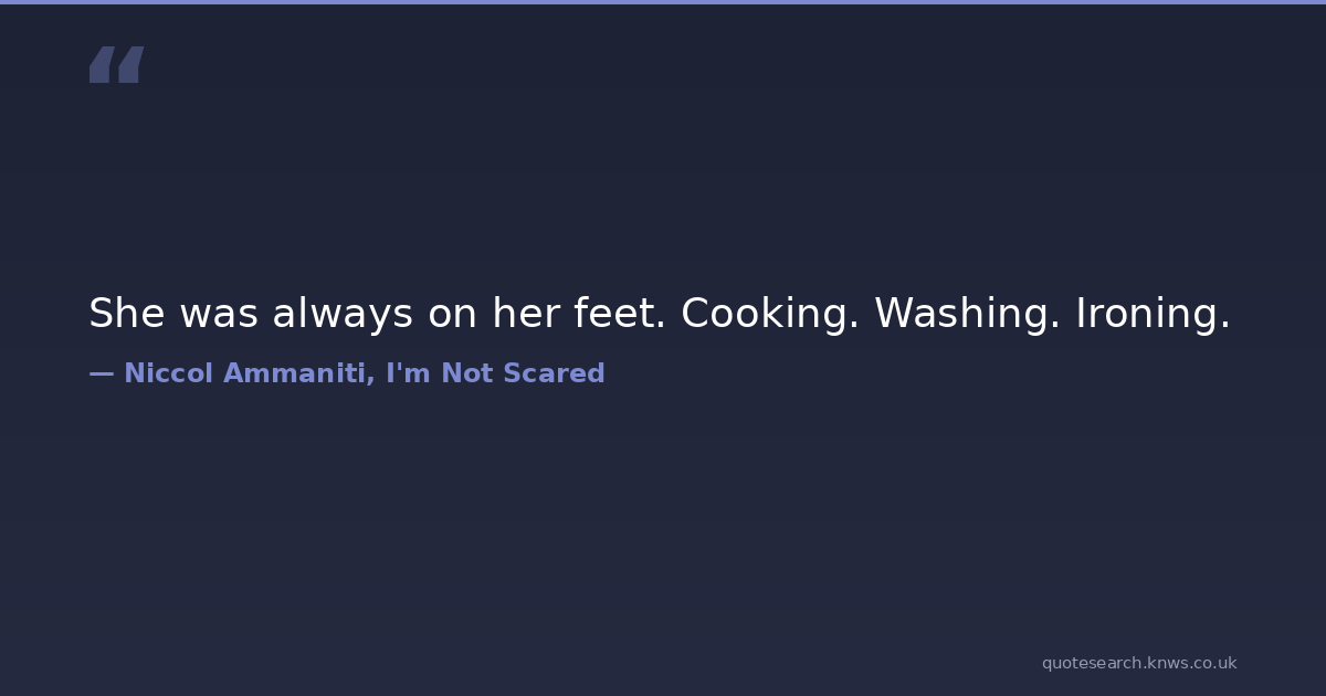 She was always on her feet. Cooking. Washing. Ironing. housewife sexism Download Image Share on X Share on Facebook Copy Link