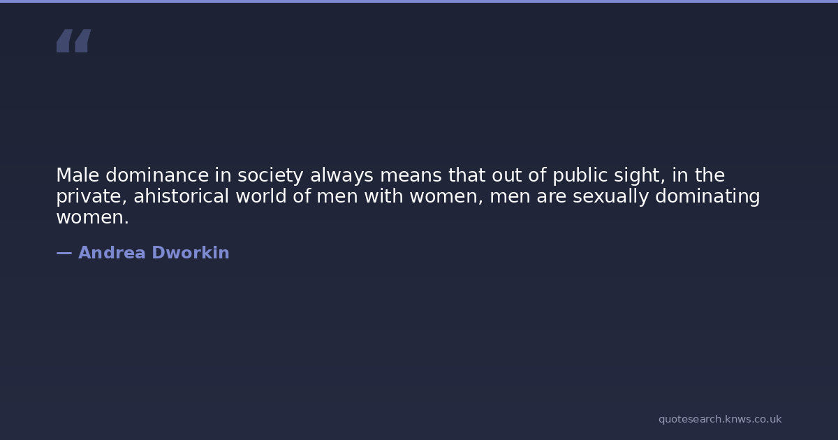 Male dominance in society always means that out of public sight, in the private, ahistorical world of men with women, men are sexually dominating women.