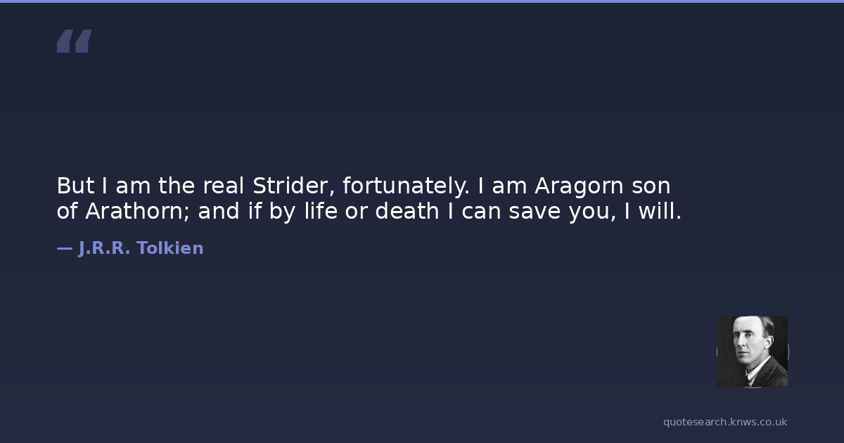 But I am the real Strider, fortunately. I am Aragorn son of Arathorn; and if by life or death I can save you, I will.