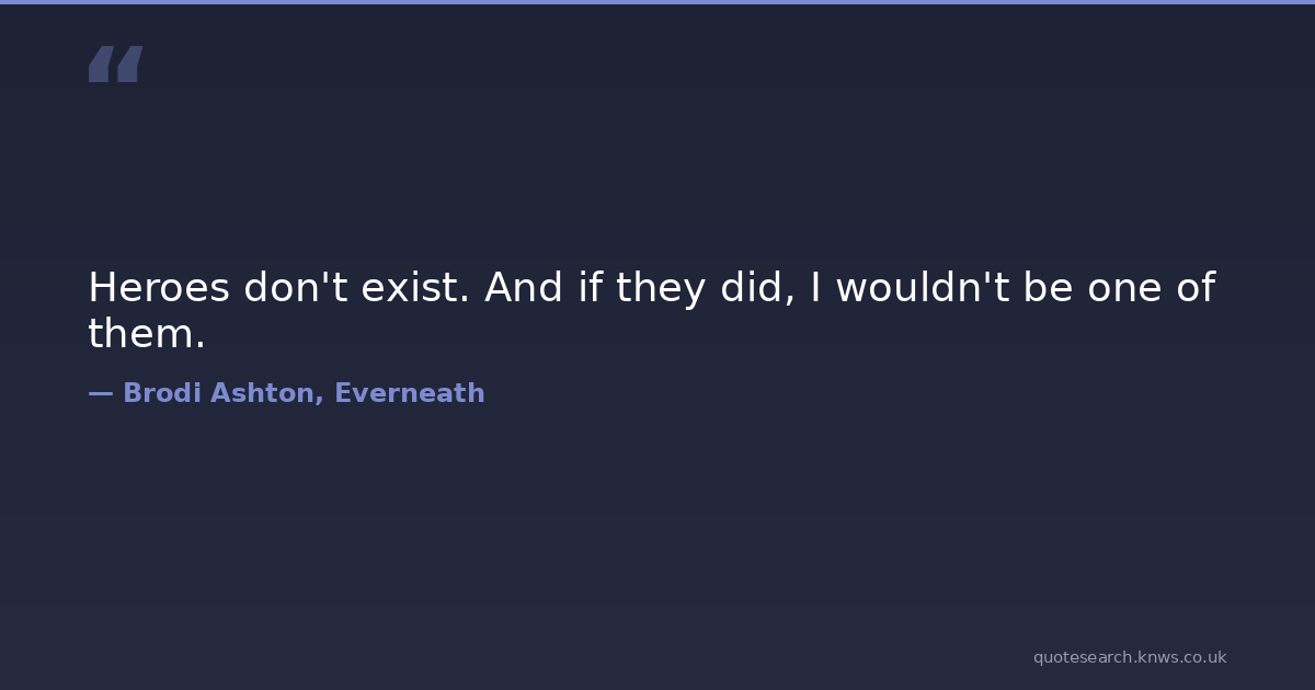Heroes don't exist. And if they did, I wouldn't be one of them. ambiguity heroes villains Download Image Share on X Share on Facebook Copy Link