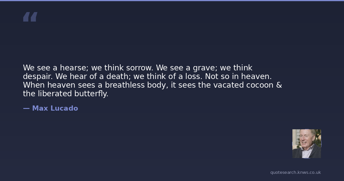 We see a hearse; we think sorrow. We see a grave; we think despair. We hear of a death; we think of a loss. Not so in heaven. When heaven sees a breathless body, it sees the vacated cocoon & the liberated butterfly.
