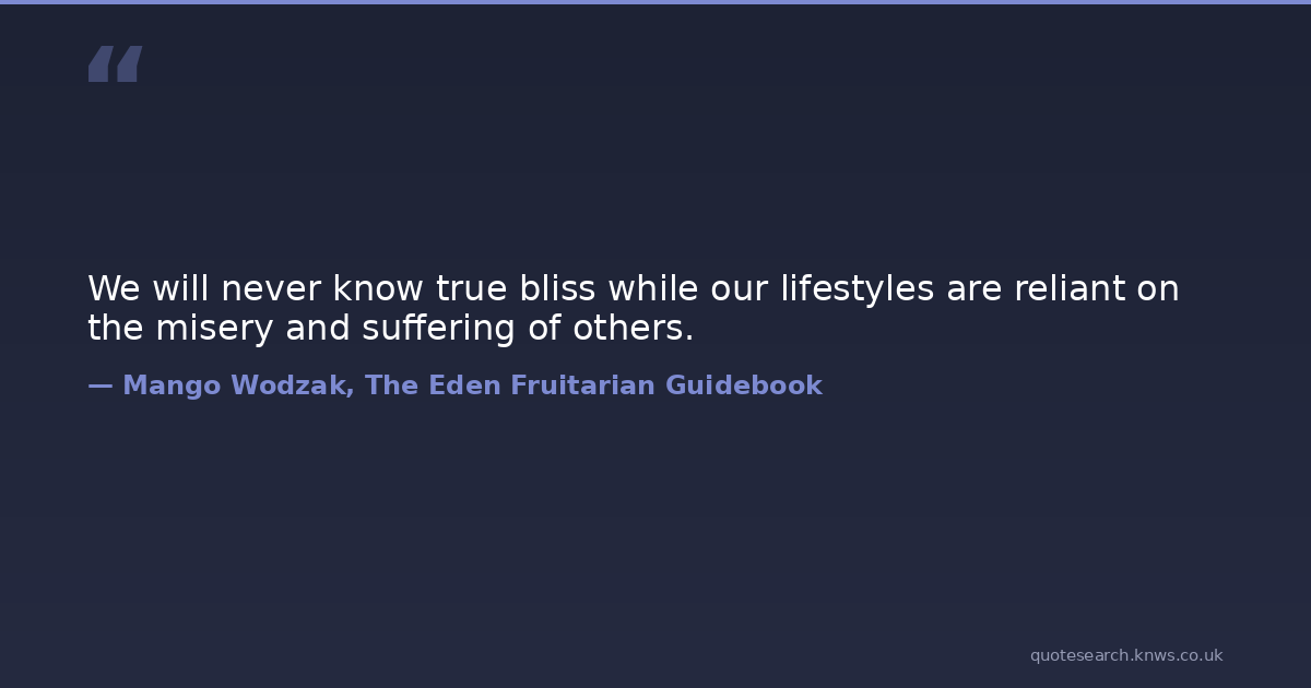 We will never know true bliss while our lifestyles are reliant on the misery and suffering of others.