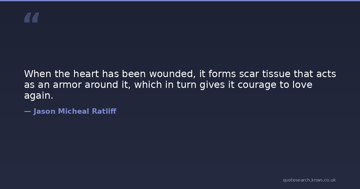 When the heart has been wounded, it forms scar tissue that acts as an armor around it, which in turn gives it courage to love again.