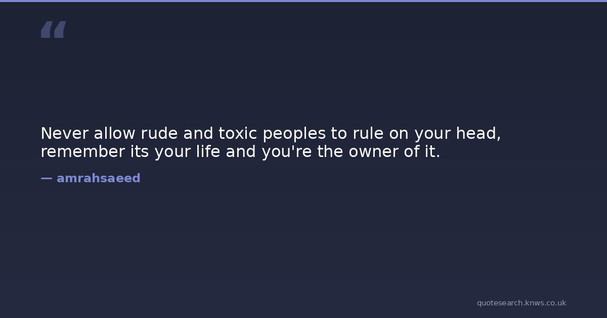 Never allow rude and toxic peoples to rule on your head, remember its your life and you're the owner of it. lifestyle Download Image Share on X Share on Facebook Copy Link