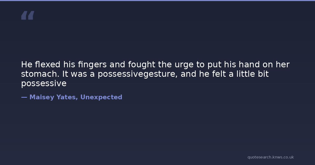 He flexed his fingers and fought the urge to put his hand on her stomach. It was a possessivegesture, and he felt a little bit possessive
