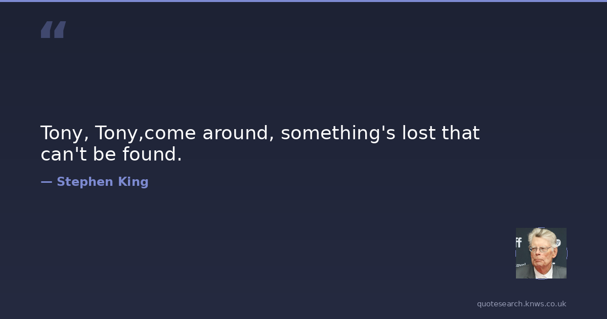 Tony, Tony,come around, something's lost that can't be found.