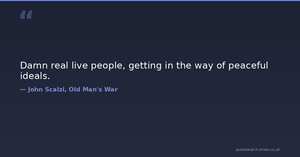 Damn real live people, getting in the way of peaceful ideals. damn ideals live peaceful people real way Download Image Share on X Share on Facebook Copy Link