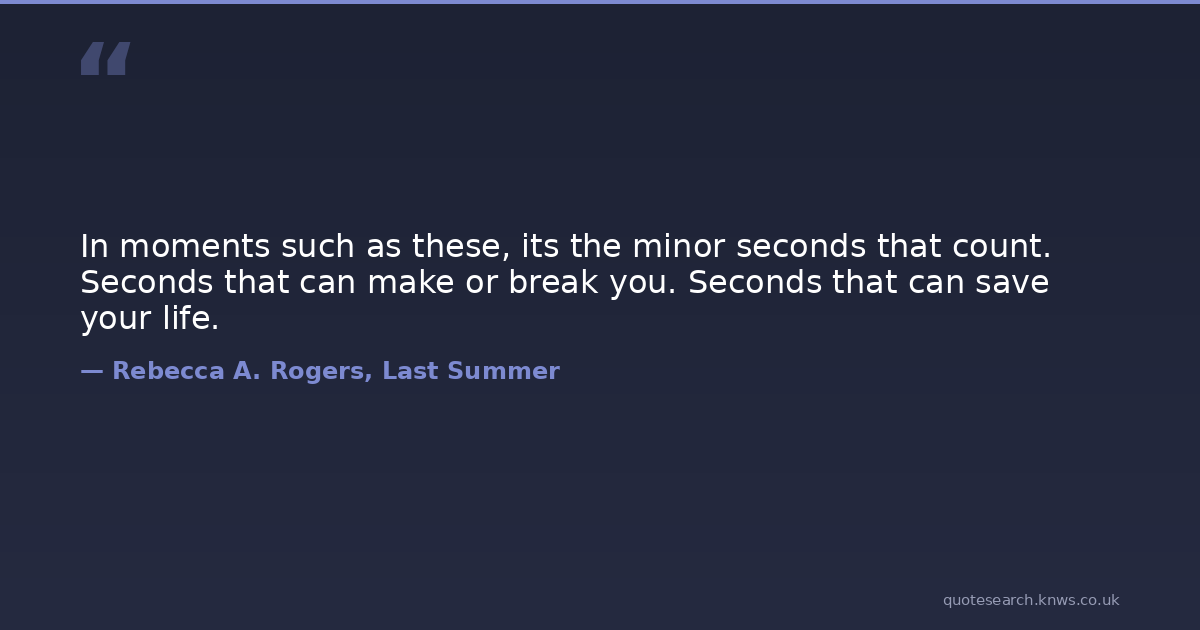 In moments such as these, its the minor seconds that count. Seconds that can make or break you. Seconds that can save your life.