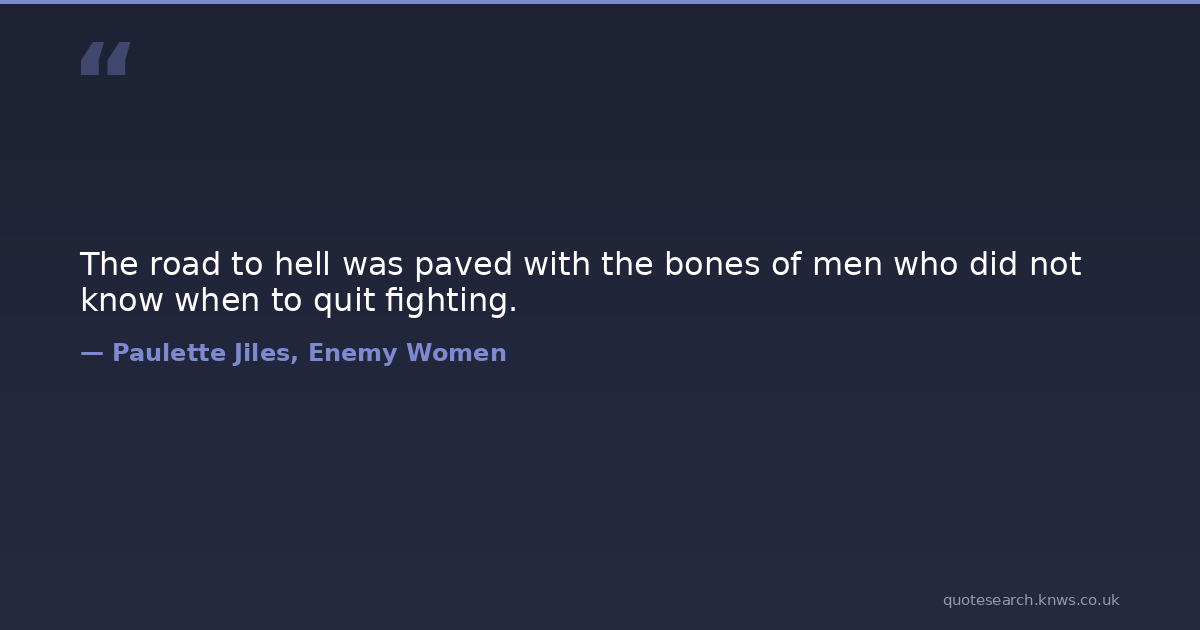 The road to hell was paved with the bones of men who did not know when to quit fighting.