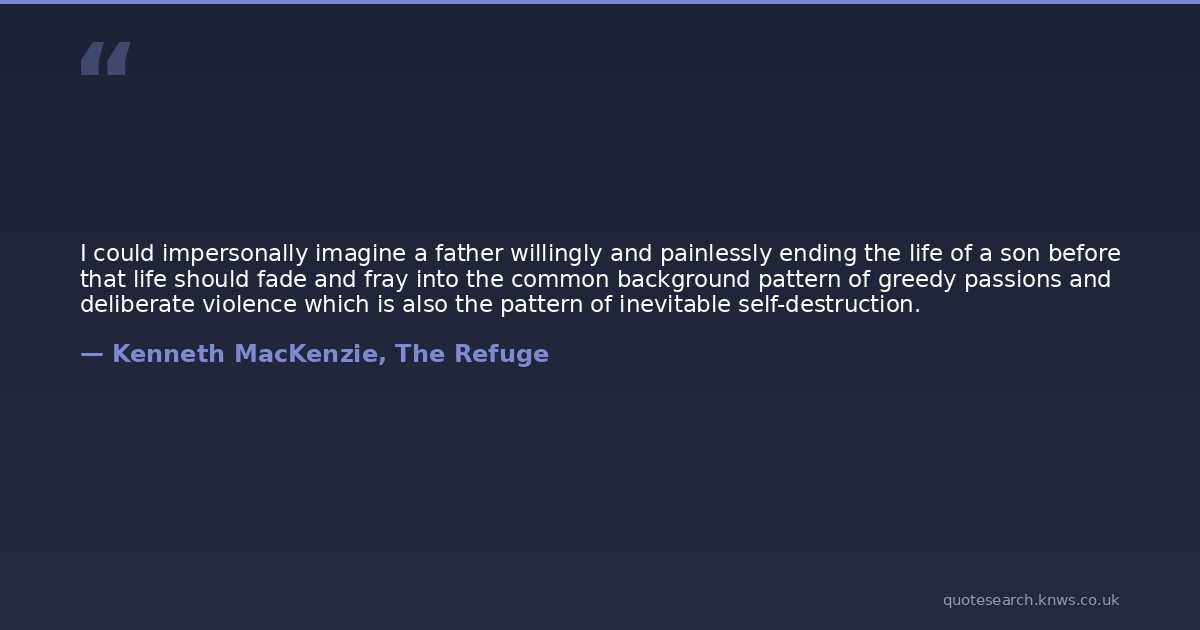 I could impersonally imagine a father willingly and painlessly ending the life of a son before that life should fade and fray into the common background pattern of greedy passions and deliberate violence which is also the pattern of inevitable self-destruction.