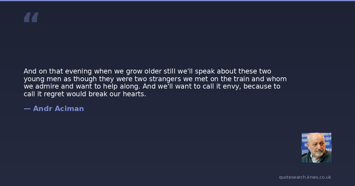 And on that evening when we grow older still we'll speak about these two young men as though they were two strangers we met on the train and whom we admire and want to help along. And we'll want to call it envy, because to call it regret would break our hearts.
