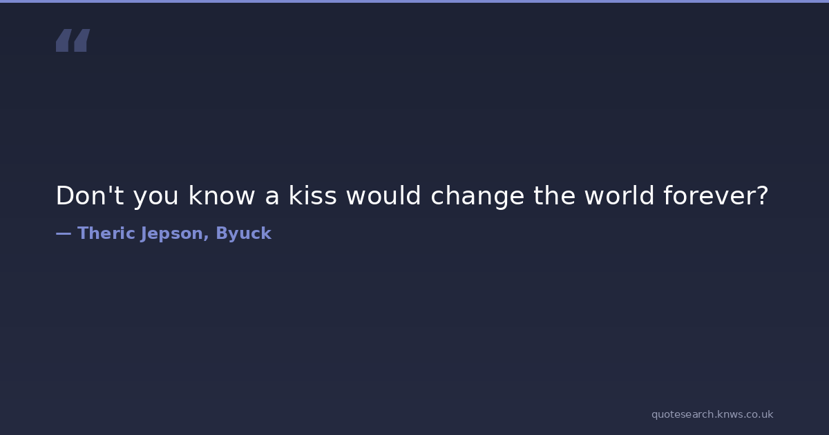 Don't you know a kiss would change the world forever?